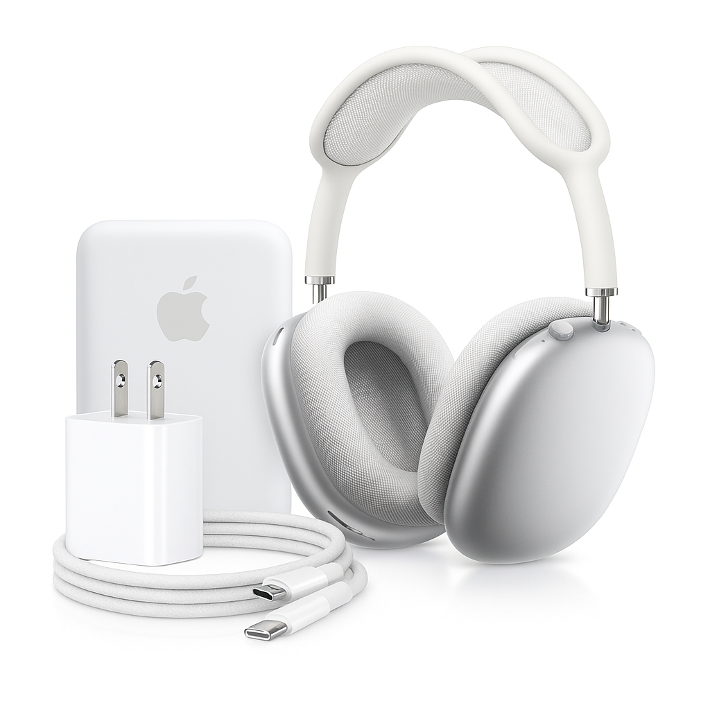 El combo incluye los auriculares premium AirPods Max, el cargador inalámbrico magnético Battery Pack y el Cargador USB-C de 20W con cable tipo C.